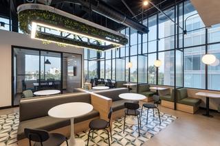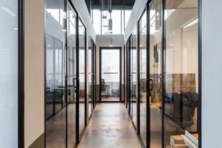 Recognizing that work takes place both individually and collectively, the architectural program includes phone booths; offices for four, six, eight, and up to eighteen people; open work areas; and a flexible meeting room that enhances adaptability within the design itself, allowing the space to be configured to different needs. The layout encourages spontaneous communication and creativity, while also respecting moments of privacy and concentration. This organization reflects a nuanced understanding of the dynamics of contemporary workers and entrepreneurs.