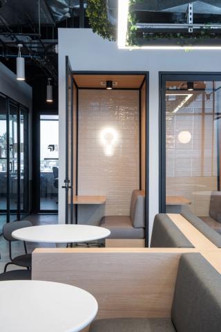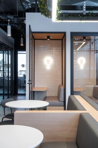 Recognizing that work takes place both individually and collectively, the architectural program includes phone booths; offices for four, six, eight, and up to eighteen people; open work areas; and a flexible meeting room that enhances adaptability within the design itself, allowing the space to be configured to different needs. The layout encourages spontaneous communication and creativity, while also respecting moments of privacy and concentration. This organization reflects a nuanced understanding of the dynamics of contemporary workers and entrepreneurs.
